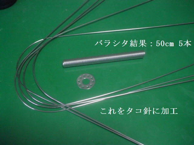 ステンレス鋼を14cm(3本/50cm)にカットし針先砥ぎ(磨き)。
