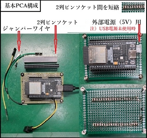 【準備その1: ESP32 基本構成部品 & PCA】 基本的な部品で構成され、ジャンパーワイヤ等で簡単に試験H/Wを構築できる。