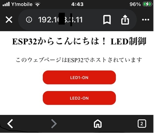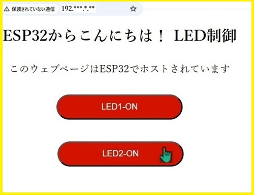 【とりあえず良く紹介されている”Lチカ”】 上記試験H/W例のESP32 LED実装による動作確認結果。