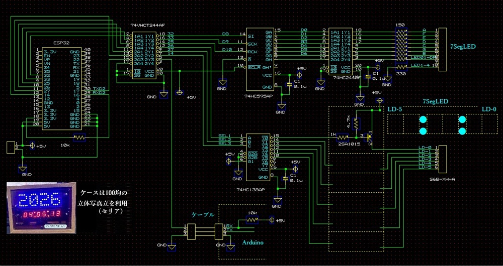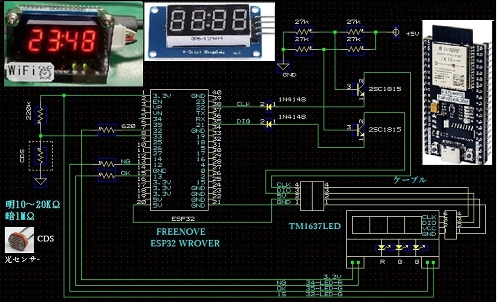 【ESP32で遊ぼう 無線通信機能を使用したもの作り】 【とりあえずWiFi時計の製作】 なにが作れるのかネットで調べた結果、WiFi時計/WiFiカメラが紹介されていた。Arduino Core for ESP32 はもうずいぶん前 2.0系から3.0系にバージョンアップされ、変更が多く混乱させられた。ただ、公式の説明がよく分からなかったり、 移行の仕方が載っているWeb記事が引っかからなかったり大変です。未だに古い記事などでは2.0系のコード記述で変換も 解説記事が少ないので苦労します。タイマー割り込み設定等はその典型でチョッピリ苦労した。 WiFi接続は6時間間隔とし、時間取得後切断する。(無駄に資源を使わない?)