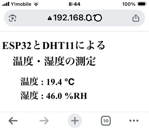 【とりあえず良く紹介されている”温湿度センサーデータ取得】 上記試験H/W例のESP32 湿温度計実装よる動作確認結果。