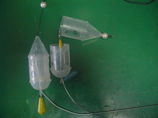ケミカルライトは水中集魚灯として、仕掛は、フグ対策を兼ねて、サビキの様に薄手のビニールを巻いてイカ短冊を付けている。
